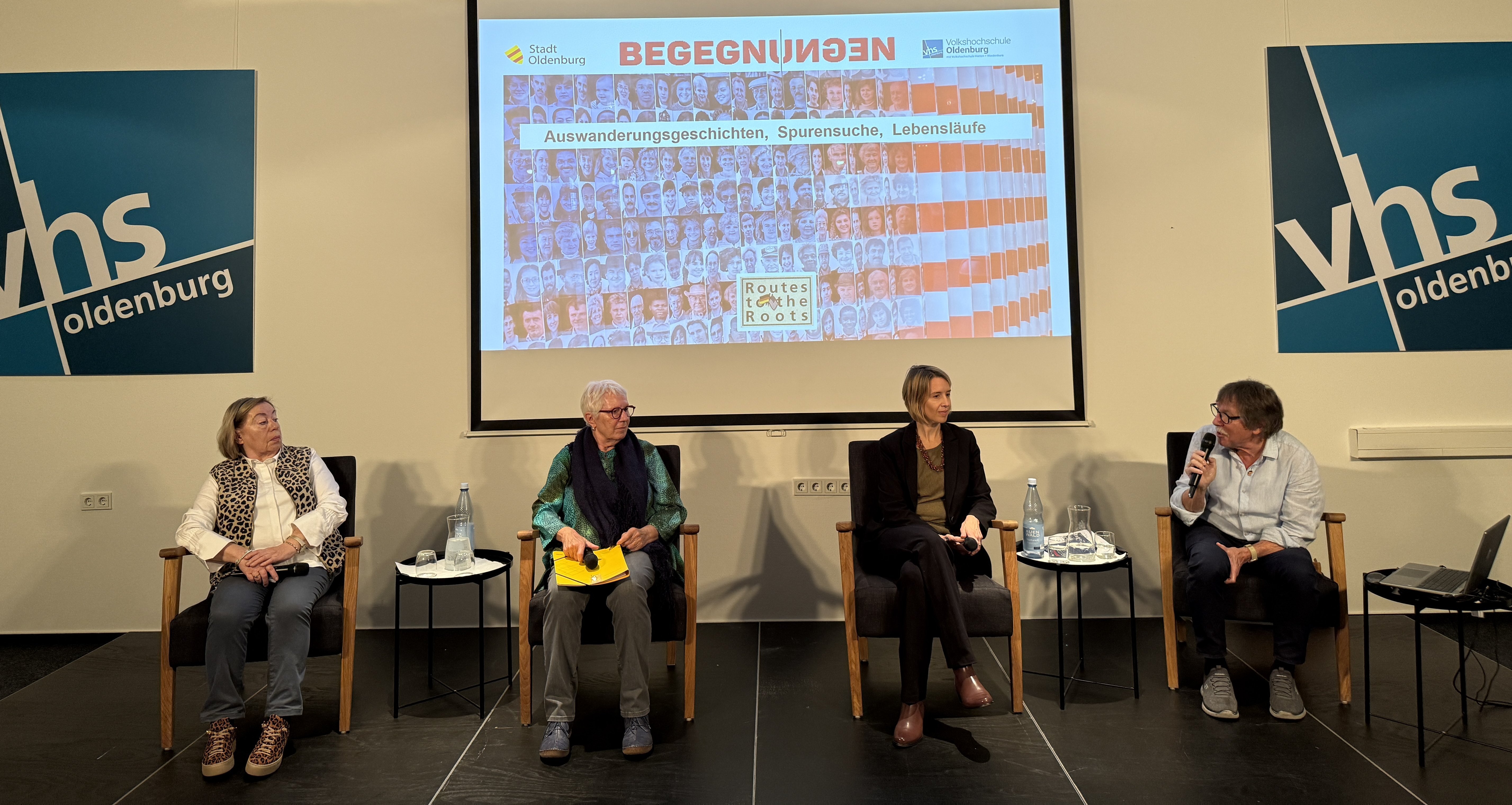 Den Spuren deutscher Auswanderung in die USA folgten gleich zwei Veranstaltungen. Für„Auswanderungsgeschichten, Spurensuche, Lebensläufe“ (Mittwoch 5. November) begrüßte die VHS Erin Markley, stellvertretende Pressesprecherin der US-Botschaft in Berlin, und ihre Verwandtschaft aus dem Oldenburger Münsterland. Bei „The Pursuit of Happiness“ (18. November) zog Dr. Wolfgang Grams (Routes to the Roots) Parallelen zur heutigen Migrationsdebatte und teilte seine Erfahrungen aus zahlreichen Begegnungen mit Nachfahren deutscher Auswander*innen in den USA.