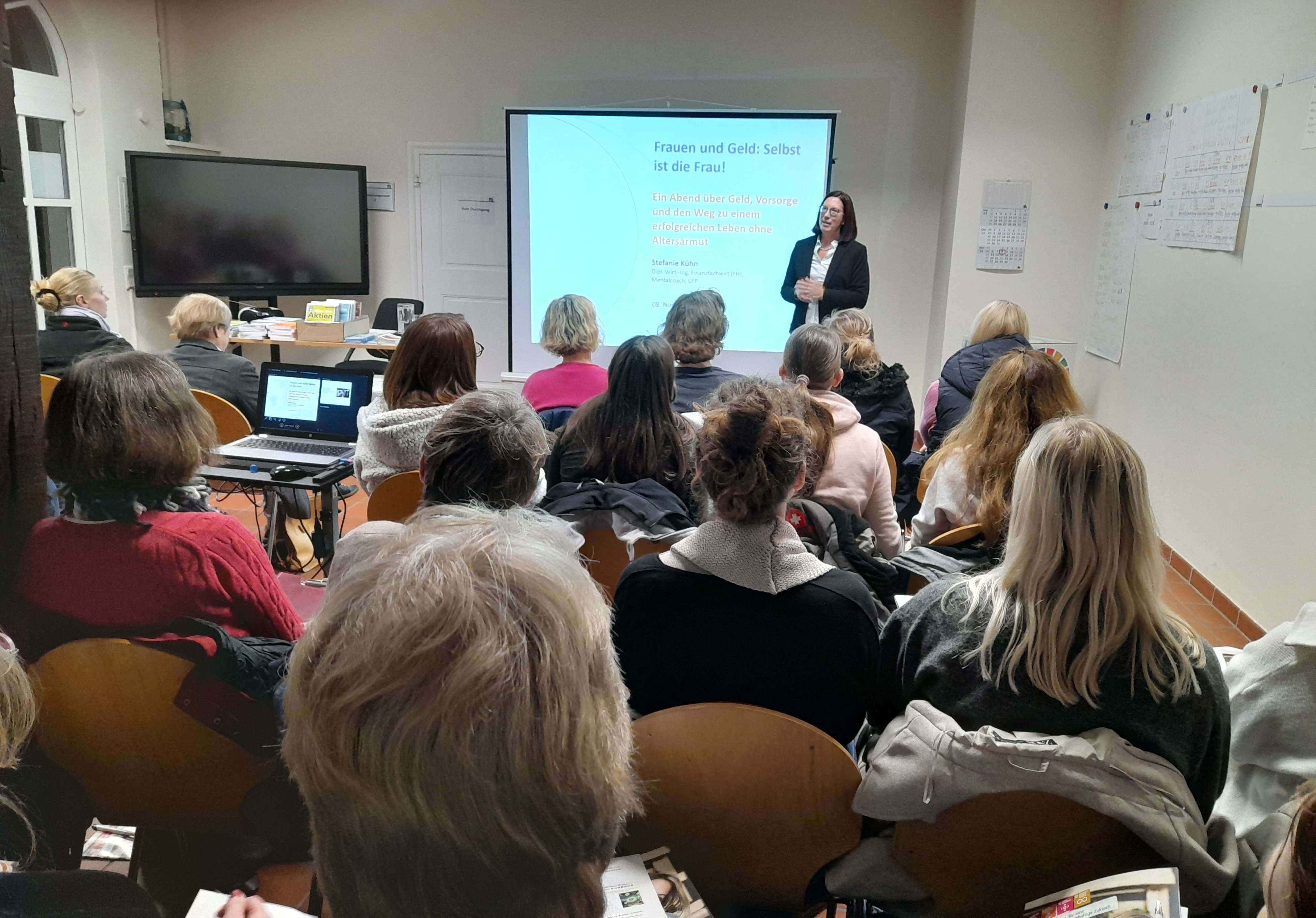 Die Frauen erfuhren Wichtiges über die verschiedenen Möglichkeiten der Geldanlage, sinnvolle und weniger sinnvolle Versicherungen und vor allem, dass es wichtig ist, sich selbst mit den Themen Geld und Altersvorsorge zu beschäftigen. Dass mit dem Abend ein erster Schritt erfolgte, zeigten auch die vielen Fragen, die Frau Kühn geduldig beantwortete.