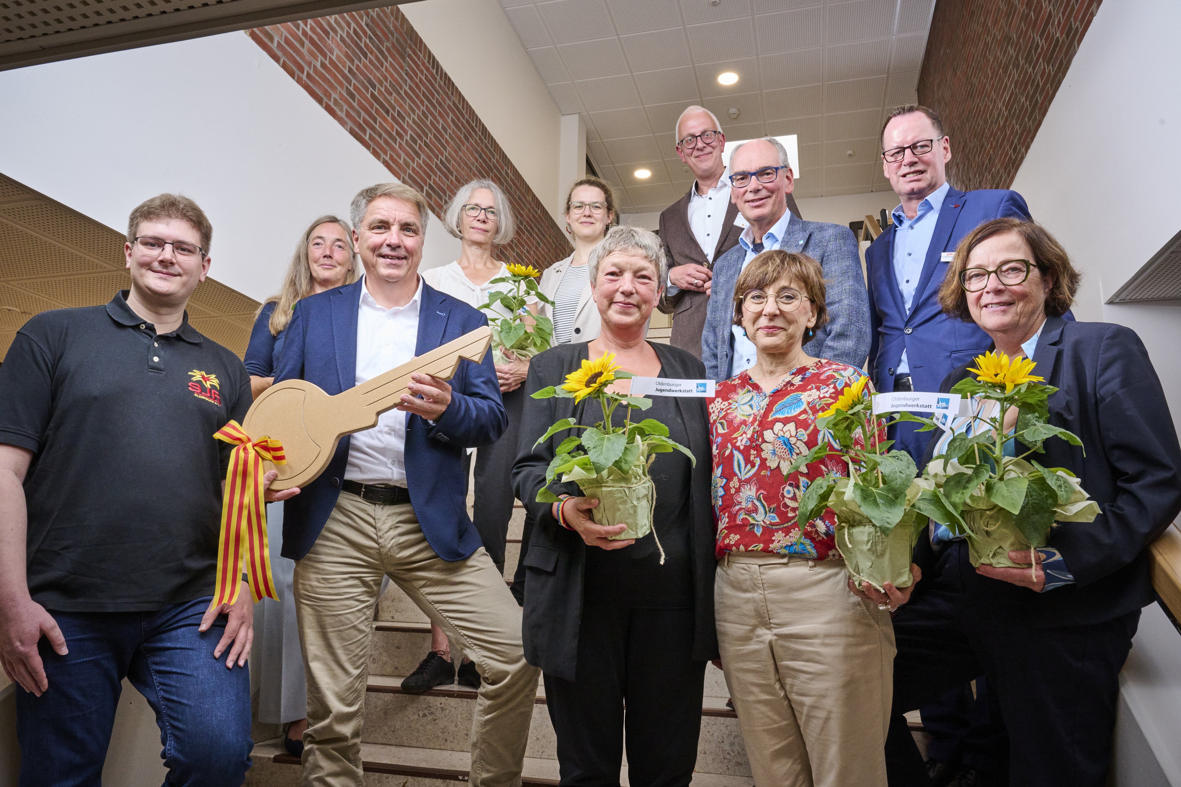 Das Oldenburger „Haus der Jugend“ vereint drei wichtige Teamplayer der Kinder- und Jugendhilfe unter einem Dach: Das Zentrum der kommunalen Stadtjugendpflege des Fachdienstes Jugend- und Gemeinwesenarbeit im Amt für Jugend und Familie, das Zentrum der Jugendverbandsarbeit und Sitz des Stadtjugendrings Oldenburg e.V. und einen Teil der Oldenburger Jugendwerkstatt (OJW) in Trägerschaft der VHS Oldenburg. Das ist nicht neu – wohl aber der Standort: Denn seit etwa 1990 war das „Haus der Jugend“ im Stadtteil Bürgerfelde angesiedelt. Am Freitag, 9. August, wurden die neuen gemeinsamen Räumlichkeiten im Eßkamp 126 in Anwesenheit von Dr. Christine Arbogast, Staatssekretärin Niedersächsisches Ministerium für Soziales, Arbeit, Gesundheit und Gleichstellung, Luise Troeder, Projektmanagerin der Bundestransferstelle Investitionspaket „Soziale Integration im Quartier“ im Auftrag des Bundesministeriums für Wohnen, Stadtentwicklung und Bauwesen, sowie Oberbürgermeister Jürgen Krogmann offiziell eröffnet. Gleichzeitig wurde das 30-jährige Bestehen der Oldenburger Jugendwerkstatt gefeiert.