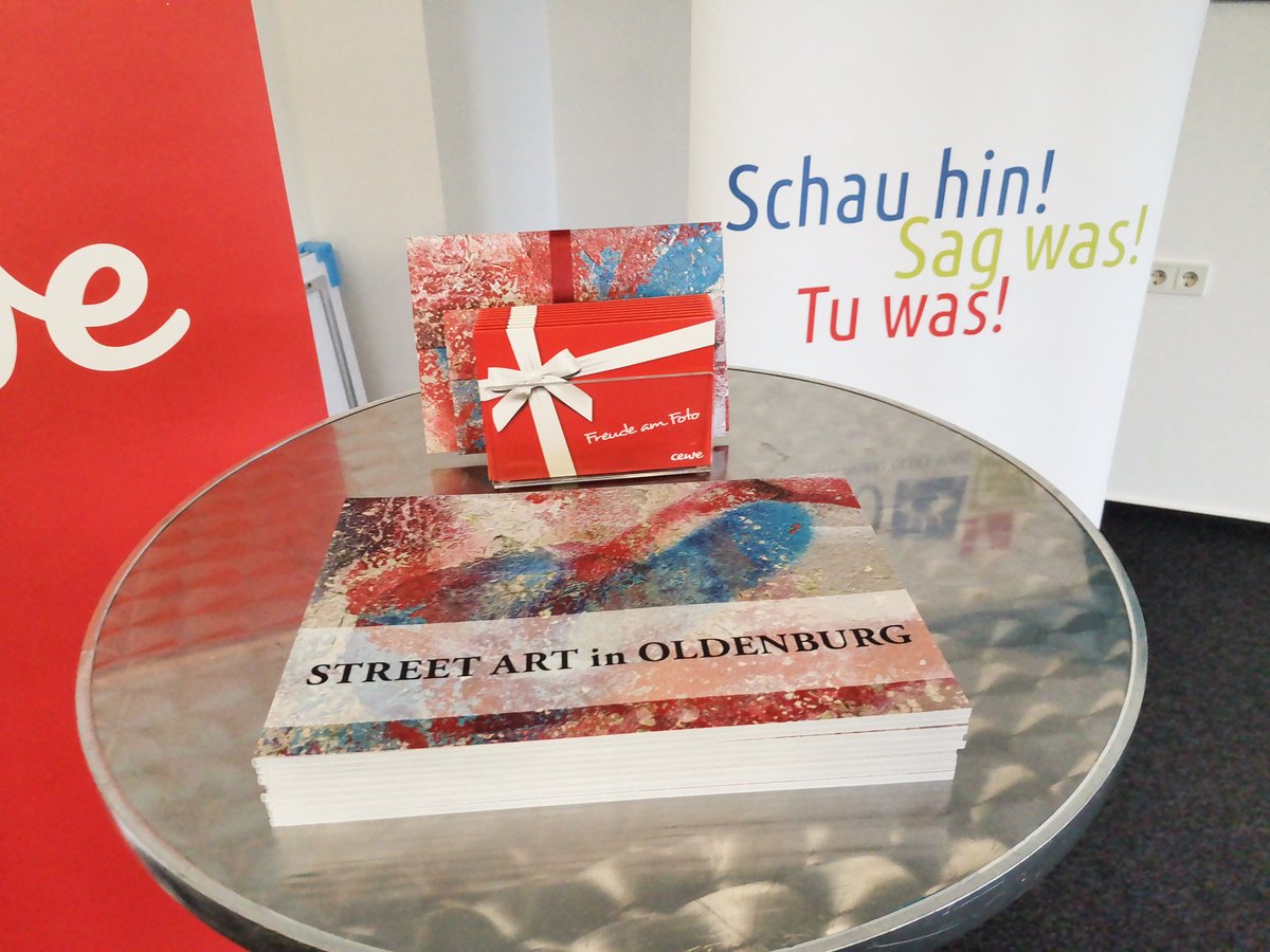 Im Sommer 2020 riefen wir einen Wettbewerb aus, diese vergängliche Kunstform fotografisch zu erkunden und erhielten hunderte Einsendungen von Hobby- und Profi-Fotograf*innen. Darunter Fotos aktueller, aber auch bereits wieder verschwundener Motive in einer beeindruckenden Bandbreite kreativen Schaffens von dokumentarischen Fotos, Schnappschüssen und Detailaufnahmen bis hin zu mitunter aufwändig inszenierten Bildern. Die neueste Ausstellung der VHS Oldenburg in Kooperation mit dem Präventionsrat Oldenburg, Cewe und Wöltje präsentiert eine Auswahl der spannendsten Fotografien dieses Wettbewerbs und gewährt somit einen fokussierten Blick auf die derzeitige und historische Street Art unserer Stadt.