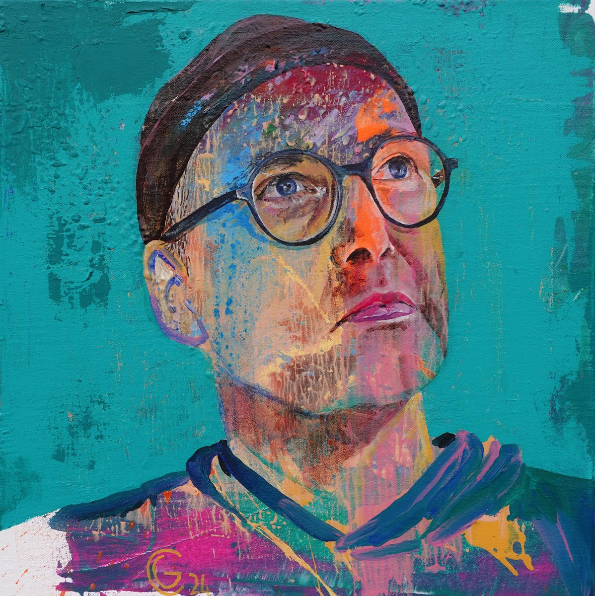 Ein in einer langen Nacht geschossenes Foto und eine Sitzung im Atelier sind der Ursprung dieser Ausstellung: mit dem Gemälde eines Freundes beginnt eine Reihe an Porträts, die nicht nur das quadratische Format 50 x 50 cm und eine verhältnismäßig schnelle Fertigstellung eint. Alle 50 Porträtierten haben eine, wenn auch nicht in jedem Falle gegenseitige, Beziehung zum Künstler. Innerhalb von eineinhalb Jahren malt er Porträts von Familienmitgliedern, Freunden, Autoren, Künstlern, Musikern, Politikern und Sportlern. Es sind Menschen, deren Züge zwar malerisch nicht bis in das letzte Detail ausgeführt sind, die die Betrachtenden aber mit ihrem Blick einfangen wollen.
