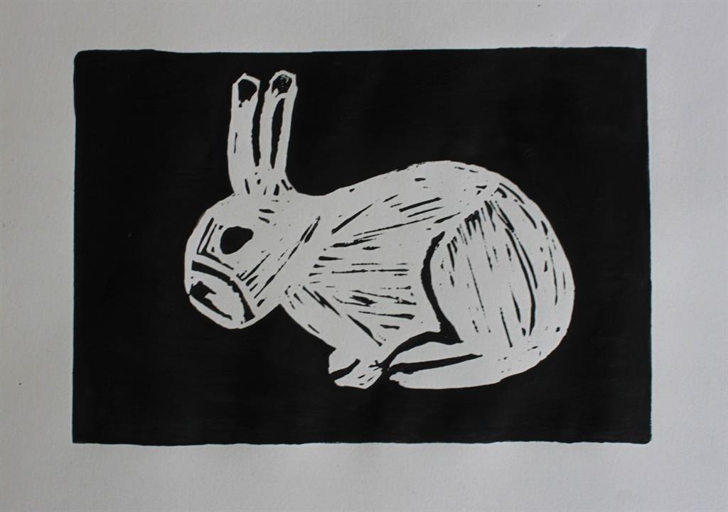 Schneehase/Linoldruck (Chr. Hackbarth)